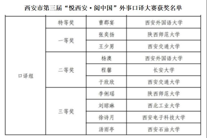 我校學(xué)生在西安市第三屆“悅西安·閱中國”外事口譯大賽中喜獲佳績