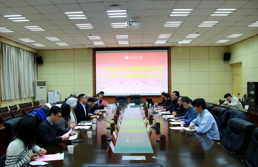 李齊軍介紹了SPE整體情況和南海分會的組織架構(gòu)及主要業(yè)務,并就本次來校設立SPE獎學金、招聘畢業(yè)生、開展學術(shù)交流等相關(guān)事宜作了說明。他強調(diào),作為交流合作的第一站,非常期待能與學校在國際化人才培養(yǎng)、學術(shù)交流等方面開展務實合作,共同為石油行業(yè)發(fā)展做出積極貢獻。