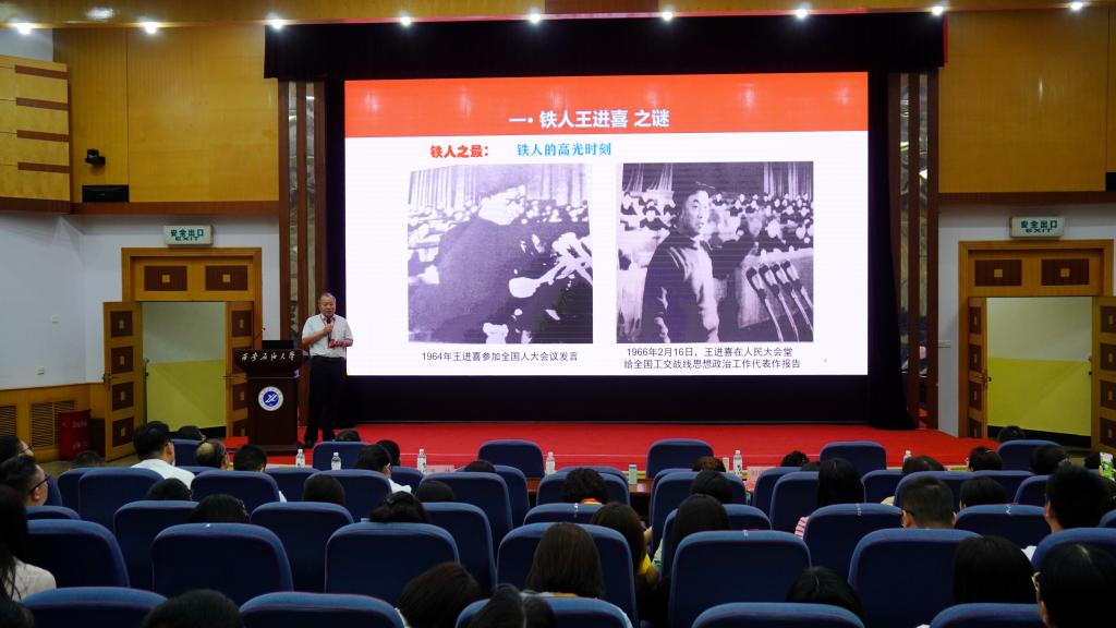 中國石油政研會特約研究員、我校鐵人精神研究中心首席專家郭崗彥以“感悟鐵人魅力,解析精神密碼”為題,剖析了鐵人精神的深刻內涵,闡釋了鐵人精神的時代價值。