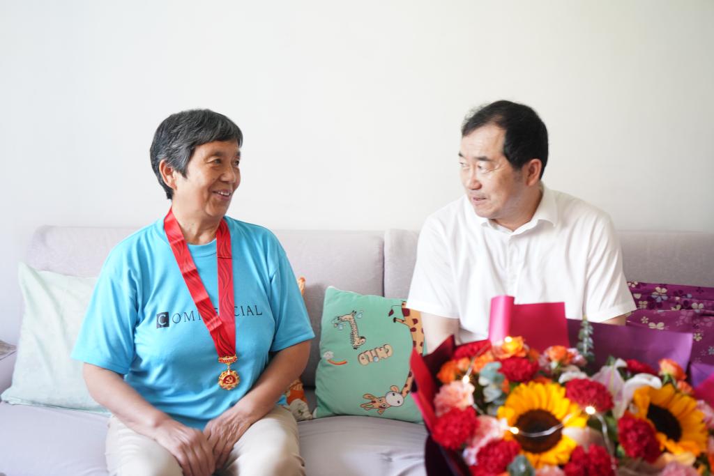 校黨委副書記雷西合先后走訪慰問了潘自安、段翠英兩位離退休老黨員,并為他們佩戴了“光榮在黨50年”紀念章。雷西合轉達了學校黨委對他們的問候,與他們深入交談,悉心詢問他們的家庭及健康情況,認真聽取他們的意見和建議,讓他們真切感受到黨組織的關懷和學校的溫暖。雷西合囑咐老黨員們保重身體,希望他們繼續(xù)發(fā)揮自己的政治優(yōu)勢、經(jīng)驗優(yōu)勢和威望優(yōu)勢,為學校的高質量發(fā)展貢獻力量。