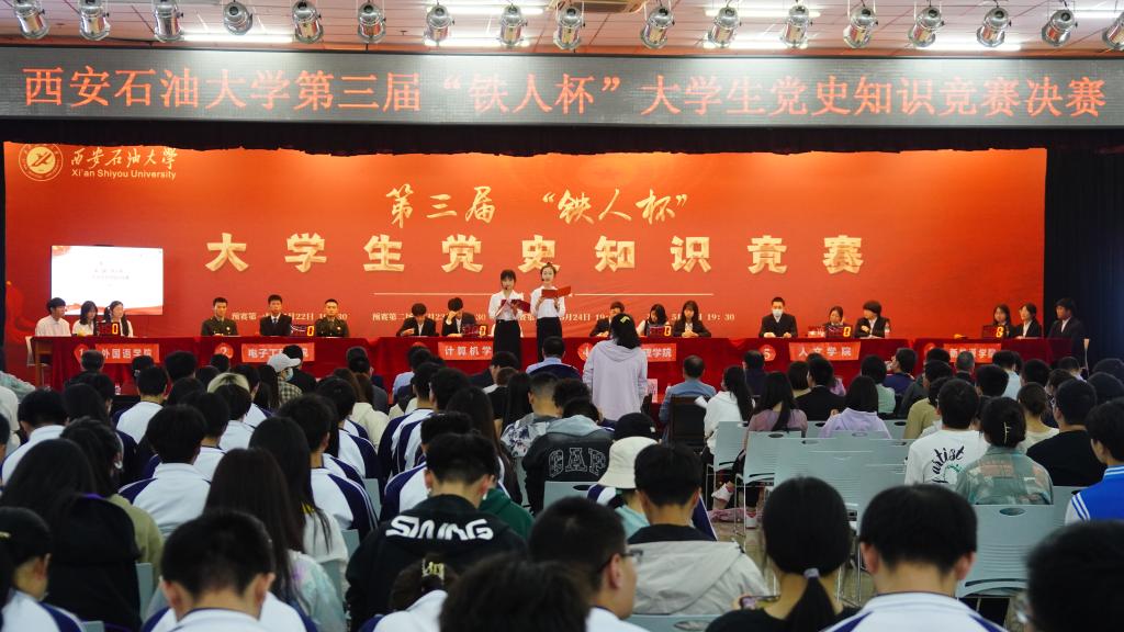 5月29日晚,由馬克思主義學(xué)院、教務(wù)處主辦,組織部、宣傳部、學(xué)工部和校團(tuán)委協(xié)辦的西安石油大學(xué)第三屆“鐵人杯”大學(xué)生黨史知識(shí)競(jìng)賽決賽在鄠邑校區(qū)騰輝大學(xué)生活動(dòng)中心舉行。校黨委副書(shū)記張木蒞臨現(xiàn)場(chǎng)指導(dǎo),相關(guān)部門(mén)、院(系)負(fù)責(zé)人、教師及學(xué)生代表觀摩了此次競(jìng)賽活動(dòng)。