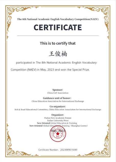 外國語學(xué)院組織我校1172名學(xué)生參賽(本科生1032人,研究生140人)。經(jīng)過三輪比拼,我校學(xué)生王俊楠從一萬七千名參賽者中脫穎而出,獲全國特等獎(jiǎng),摘得“學(xué)術(shù)英語詞匯之星”!這是外國語學(xué)院自2021年組織我校學(xué)生參加該競賽以來的重大突破!