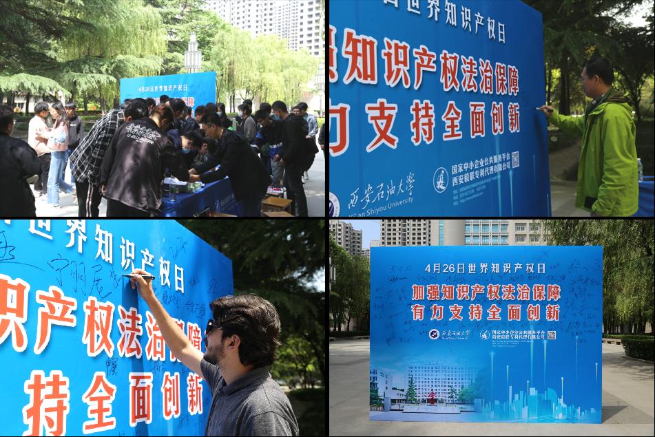 本次“世界知識產(chǎn)權(quán)日”系列宣傳活動受到了學(xué)校師生的廣泛關(guān)注和歡迎。在東方石油樓前設(shè)置知識產(chǎn)權(quán)宣傳幕墻,活動現(xiàn)場設(shè)立咨詢臺,向師生宣傳、講解知識產(chǎn)權(quán)保護相關(guān)法律法規(guī)、申請專利和版權(quán)的方法和途徑、商標(biāo)的注冊與續(xù)展等知識,發(fā)放宣傳資料等1500余份,解答師生咨詢近40人次,并且?guī)熒筒糠至魧W(xué)生們在宣傳幕墻上踴躍簽名,以表達對知識產(chǎn)權(quán)的尊重與維護。
