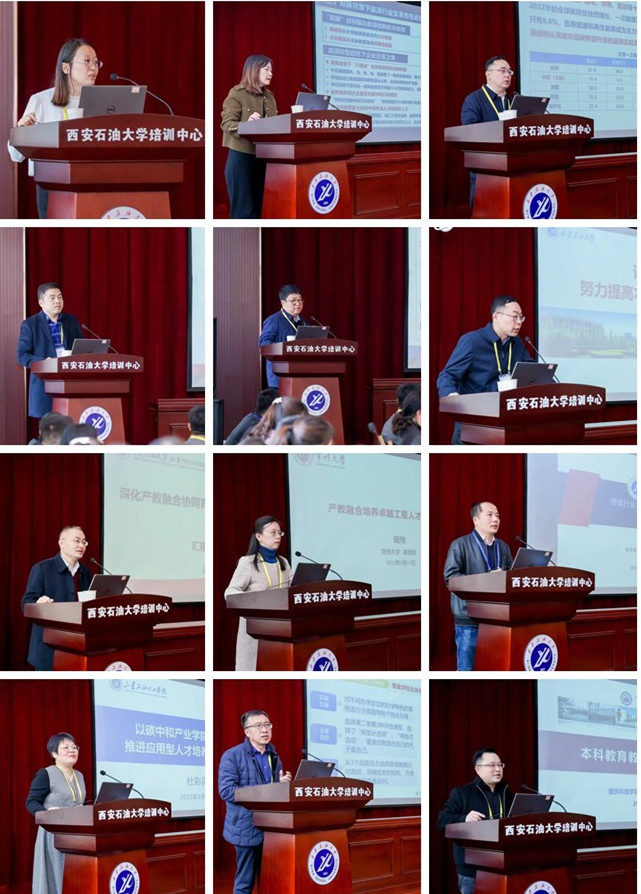 與會代表分別作了《“雙碳”背景下全面提升人才培養(yǎng)質(zhì)量的探索與實踐》《“雙碳”背景下碳中和人才培養(yǎng)的路徑探索》《服務(wù)國家“雙碳”戰(zhàn)略,“雙能驅(qū)動”培養(yǎng)一流本科人才》《“雙碳”背景下應(yīng)用型本科人才培養(yǎng)的思考》《綠色低碳背景下長江大學石油學科人才培養(yǎng)實踐探索與啟示》《深化產(chǎn)教融合協(xié)同育人,扎實推進新工科建設(shè)》《迎評促建,努力提高本科人才培養(yǎng)質(zhì)量》《新一輪審核評估試點情況》《產(chǎn)教融合培養(yǎng)卓越工程人才的探索與實踐》《以評促建、以評促強,建設(shè)行業(yè)特色鮮明的一流應(yīng)用型大學》《產(chǎn)教融合驅(qū)動“雙碳”背景下應(yīng)用型人才培養(yǎng)路徑探索與實踐》《根植行業(yè)沃土 耕耘專業(yè)課——談滲流力學課程思政建設(shè)》《基于數(shù)據(jù)面向服務(wù)——新一代智慧教務(wù)系統(tǒng)建設(shè)與實踐》《基于審核評估的狀態(tài)數(shù)據(jù)分析與支持決策系統(tǒng)》等交流分享和專題發(fā)言。