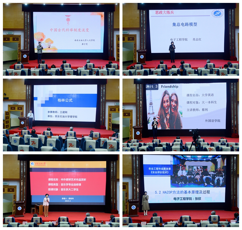 為深入學習貫徹黨的二十大精神,認真落實習近平總書記在學校思想政治理論課教師座談會上的重要講話精神,充分發(fā)揮課堂教學主渠道在高校思想政治工作中的作用,扎實深入推進學校課程思政建設工作,3月10日,我校思政課教師“大練兵”課程思政組展示活動決賽在雁塔校區(qū)學術報告廳舉行?;顒犹匮堦兾鲙煼洞髮W教育學部傅鋼善教授,西北工業(yè)大學數(shù)學與統(tǒng)計學院孫浩教授、西北大學高等教育研究中心姚聰莉教授、西北工業(yè)大學馬克思主義學院賀苗教授、西安科技大學馬克思主義學院張銘鐘教授5位專家擔任評委。校長李天太、校黨委副書記張木、副校長陳軍斌出席活動,宣傳部、學生工作部、教師工作部、人事處、教務處、高教研究與評估中心及各院(系)主要負責人,學校各專業(yè)負責人、一流本科課程負責人、課程思政示范課團隊成員及青年教師代表到場觀摩?;顒佑申愜姳笾鞒?。