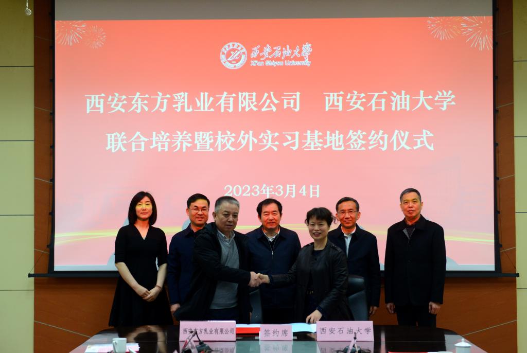 會上,還舉行了西安東方乳業(yè)有限公司和西安石油大學聯(lián)合培養(yǎng)暨校外實習基地簽約儀式。西安東方乳業(yè)有限公司總經(jīng)理丁建平和經(jīng)濟管理學院院長王君萍代表雙方簽約。學校將以本次校企合作簽約為契機,認真落實合作協(xié)議相關(guān)內(nèi)容,以校企合作、產(chǎn)教融合為突破口,積極發(fā)揮學校人才優(yōu)勢和專業(yè)優(yōu)勢,扎實推進校企在科學研究、人才培養(yǎng)、學術(shù)交流和教學實踐等方面開展多層次、多形式、多領(lǐng)域的深度合作、互利共贏。
