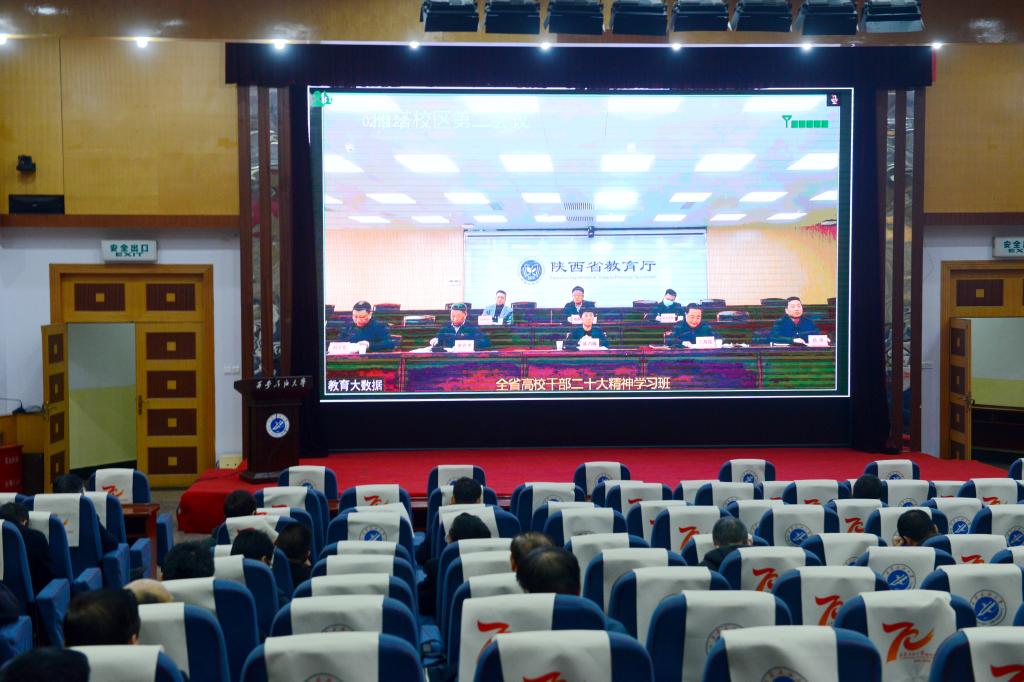 2月20日至24日,我校在雁塔校區(qū)和鄠邑校區(qū)同時設(shè)置分會場,同步組織參加由省委教育工委主辦的全省高校領(lǐng)導(dǎo)干部學(xué)習(xí)貫徹黨的二十大精神專題學(xué)習(xí)班,學(xué)校全體校領(lǐng)導(dǎo)、處級干部參加培訓(xùn)。省委教育工委書記、省教育廳廳長劉建林作開班動員講話,省委教育工委副書記陳乃霞主持開班式并作總結(jié)講話,省委教育工委委員、省教育廳副廳長王海波主持結(jié)業(yè)式。