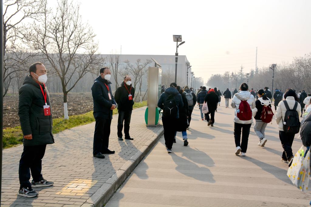 學(xué)校職能處室負(fù)責(zé)人積極投身研考一線,測溫、掃碼......院系書記、院長、教授等化身“搬運(yùn)工”,積極為監(jiān)考老師做好后勤保障工作,作為“替補(bǔ)”隨時(shí)上考場;鄠邑校區(qū)所在地方政府也全力配合學(xué)校工作,西安市公安局鄠邑分局負(fù)責(zé)押送試卷,安排警察在學(xué)校門口執(zhí)勤;區(qū)教育局安排醫(yī)護(hù)人員帶著救護(hù)車隨時(shí)待命。大家的工作目標(biāo)只有一個(gè),全時(shí)守護(hù)守候參加研究生考試的學(xué)子。