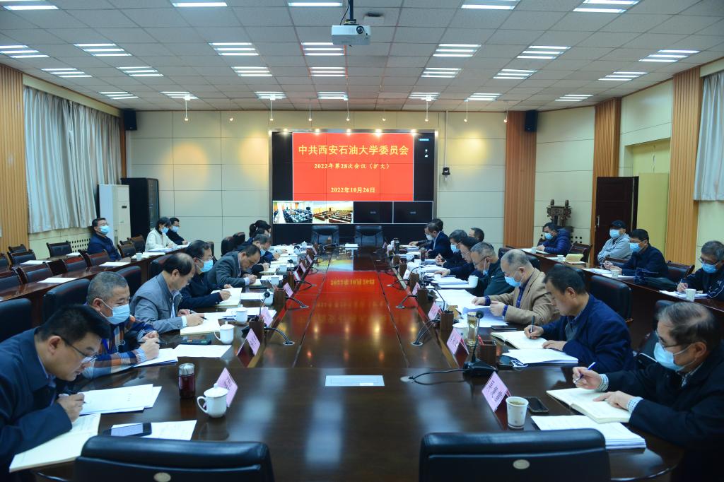 10月26日下午,校黨委(擴(kuò)大)會(huì)暨黨委理論學(xué)習(xí)中心組2022年第14次學(xué)習(xí)會(huì)在雁塔校區(qū)會(huì)議中心第二會(huì)議室、鄠邑校區(qū)圖書館第一會(huì)議室同步召開,傳達(dá)學(xué)習(xí)黨的二十大、黨的二十屆一中全會(huì)精神,傳達(dá)學(xué)習(xí)省委常委會(huì)(擴(kuò)大)會(huì)議精神,對(duì)全校學(xué)習(xí)宣傳貫徹黨的二十大精神作出安排部署,會(huì)議強(qiáng)調(diào),全校上下要深入學(xué)習(xí)宣傳貫徹黨的二十大精神,努力推動(dòng)學(xué)校各項(xiàng)事業(yè)高質(zhì)量發(fā)展。校黨政領(lǐng)導(dǎo)賽云秀、李天太、李延平、張木、楊戰(zhàn)社、陳軍斌、李華、程永清、張榮軍、樊曉民,黨委理論學(xué)習(xí)中心組成員,各院(系)級(jí)單位黨組織書記參加會(huì)議。會(huì)議由校黨委書記賽云秀主持。