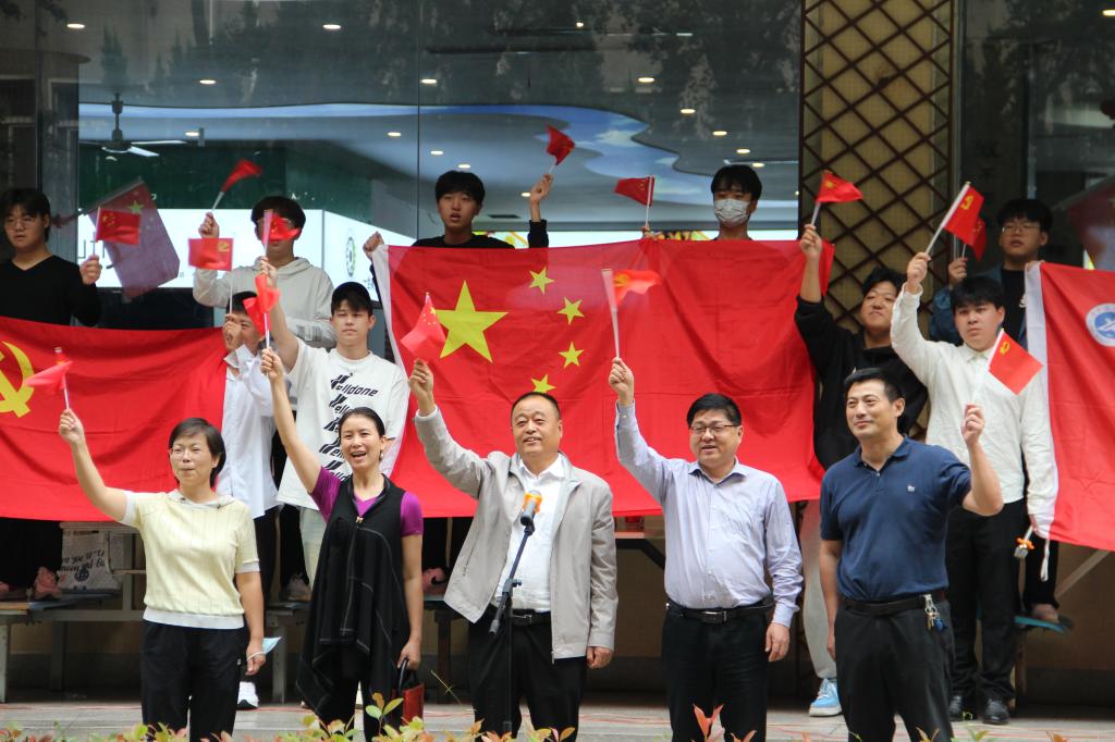 中午12點10分,“紅歌快閃”活動正式開始,首先以小合唱的形式演繹了《彈起我心愛的土琵琶》,在優(yōu)美的旋律中,學(xué)生飽含深情地演唱了《把一切獻給黨》《領(lǐng)航》,用歌聲致敬偉大的黨、偉大的祖國和偉大的時代。最后師生集體合唱了《輝煌明天》,用歌聲抒發(fā)心中愛國熱忱。活動在師生們“祝祖國母親生日快樂”的歡呼聲中圓滿結(jié)束。