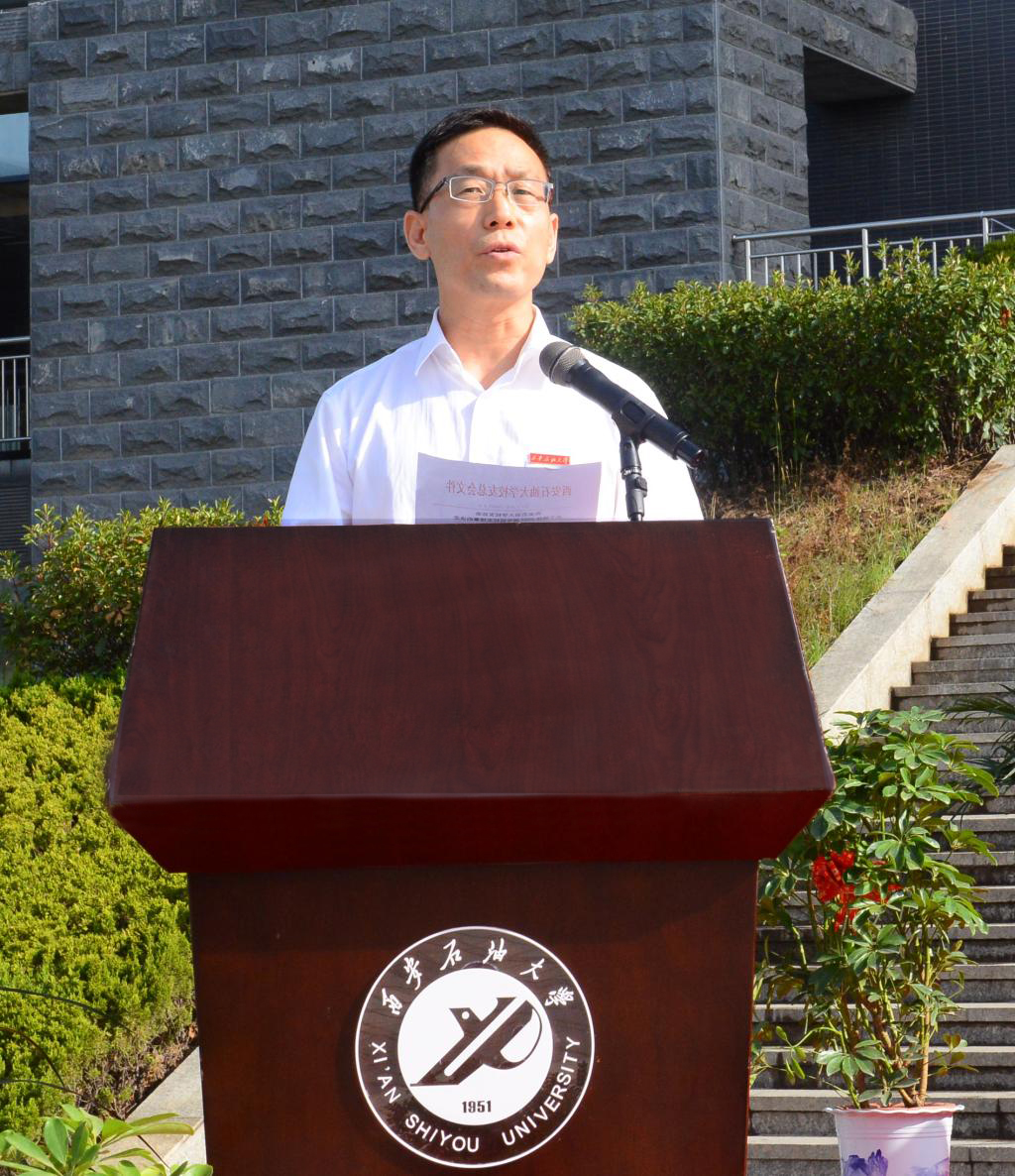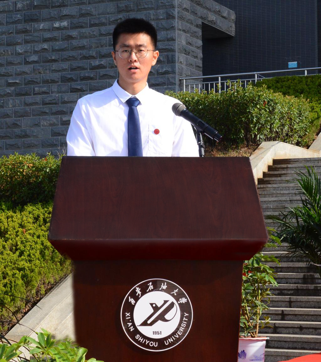教師代表、陜西省杰出青年基金獲得者、博士生導(dǎo)師、新能源學(xué)院院長(zhǎng)黃海教授向畢業(yè)生贈(zèng)言:勉勵(lì)同學(xué)們不忘初心,發(fā)揚(yáng)西石大精神,秉承西石大作風(fēng),在人生的征途上,不懼風(fēng)雨、奮勇搏擊,成就出彩的人生。