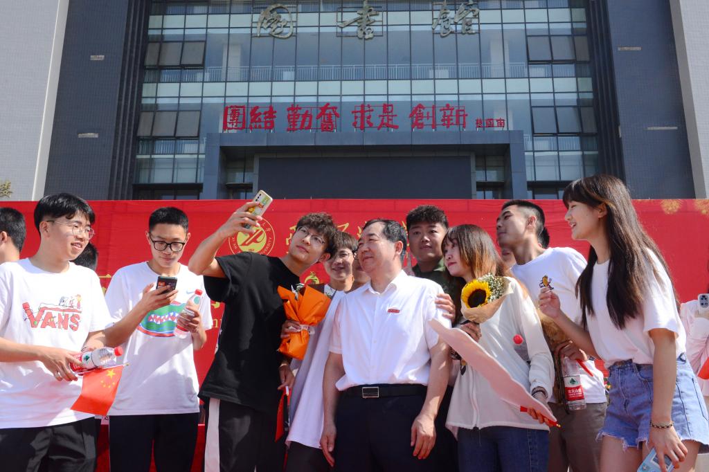 李天太為2022屆本科畢業(yè)生致辭。他代表學(xué)校全體教職員工,向順利完成學(xué)業(yè)的4173名中外本科畢業(yè)生表示熱烈祝賀,向辛勤養(yǎng)育同學(xué)們的父母、悉心指導(dǎo)同學(xué)們的老師、默默支持同學(xué)們的親朋好友表示衷心感謝。李校長(zhǎng)回顧了2022屆畢業(yè)生四年的精彩時(shí)光,以“愛(ài)國(guó)力行,不負(fù)青春”為題送全體畢業(yè)生四句話,希望同學(xué)們永葆“四顆心”:一是希望同學(xué)們永葆為國(guó)為民的赤子心,在使命擔(dān)當(dāng)中堅(jiān)定理想;二是希望同學(xué)們永永葆自立自強(qiáng)的自信心,在追求卓越中超越自我;三是希望同學(xué)們永葆鍥而不舍的進(jìn)取心,在腳踏實(shí)地中成就事業(yè);四是希望同學(xué)們永葆心存善念的感恩心,在忘我無(wú)畏中默默奉獻(xiàn)。