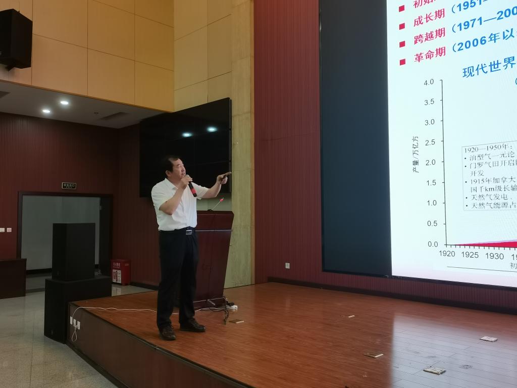 在授課中,李天太首先圍繞習(xí)近平總書記對(duì)國(guó)家能源安全作出的批示指示精神、國(guó)家“雙碳“目標(biāo)和世界能源格局等方面,向在場(chǎng)師生介紹了學(xué)校成立新能源學(xué)院、土木工程學(xué)院的背景以及必要性。隨后分別介紹了世界油氣發(fā)展趨勢(shì)和我國(guó)油氣發(fā)展趨勢(shì)。他以人類社會(huì)發(fā)展為主線,以能源科技革命為人類社會(huì)發(fā)展提供不竭新動(dòng)力為切入點(diǎn),通過詳實(shí)的數(shù)據(jù)和大量的圖表詳細(xì)闡述了世界油氣發(fā)展趨勢(shì)和我國(guó)油氣發(fā)展趨勢(shì),強(qiáng)調(diào)在我國(guó)目前能源戰(zhàn)略和結(jié)構(gòu)體系下,新能源將發(fā)揮保障國(guó)家能源戰(zhàn)略“接替”與“主力”作用。最后,李天太結(jié)合自己30余年能源行業(yè)工作學(xué)習(xí)感悟,對(duì)新能源發(fā)展趨勢(shì)作出展望。他希望新能源學(xué)院、土木工程學(xué)院的廣大學(xué)子樹立遠(yuǎn)大理想,努力學(xué)習(xí)、不負(fù)韶華,爭(zhēng)取為保障國(guó)家能源戰(zhàn)略安全作出貢獻(xiàn)。