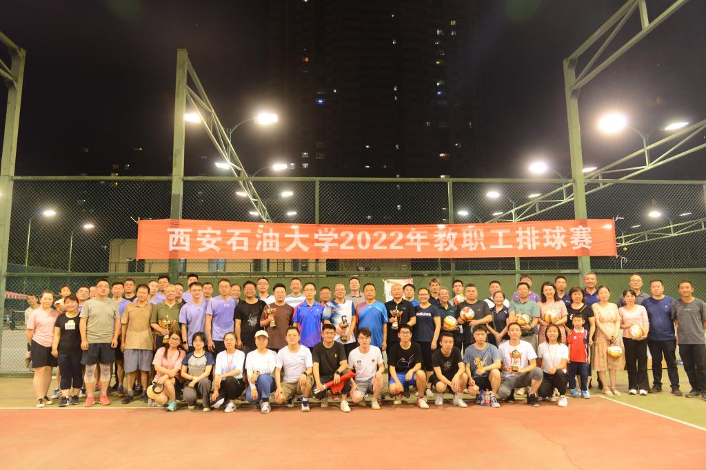 熱烈、精彩的2022年西安石油大學(xué)教職工排球比賽于6月8日落下帷幕。本次排球比賽由校工會(huì)主辦,體育系承辦,共有18個(gè)部門工會(huì)報(bào)名參加,在為期一個(gè)月的比賽周期中,校工會(huì)、體育系精心策劃、周密安排,各部門工會(huì)認(rèn)真組織,參賽隊(duì)員以飽滿的精神狀態(tài)積極投身到比賽當(dāng)中,一共進(jìn)行了40場比賽。經(jīng)過激烈角逐,石油工程學(xué)院、經(jīng)濟(jì)管理學(xué)院、材料科學(xué)與工程學(xué)院、機(jī)關(guān)七工會(huì)、機(jī)械工程學(xué)院、機(jī)關(guān)六工會(huì)代表隊(duì)分獲團(tuán)體前6名,15個(gè)部門工會(huì)獲得參與獎(jiǎng)。校黨委副書記雷西合、副校長程永清到場觀戰(zhàn),并為獲獎(jiǎng)隊(duì)伍頒獎(jiǎng)。