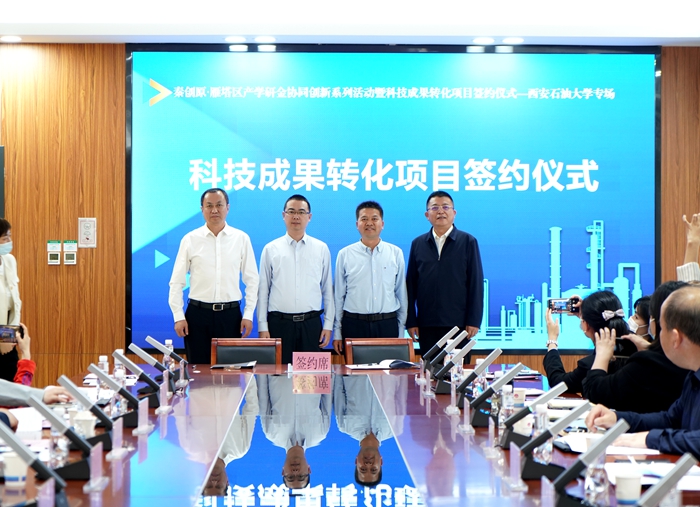 2022425日,我校與雁塔區(qū)人民政府、西安市科學(xué)技術(shù)局聯(lián)合主辦的“秦創(chuàng)原·雁塔區(qū)產(chǎn)學(xué)研金協(xié)同創(chuàng)新系列活動(dòng)暨科技成果轉(zhuǎn)化項(xiàng)目簽約儀式—西安石油大學(xué)專場(chǎng)”在雁塔區(qū)政務(wù)服務(wù)中心隆重舉行。張榮軍副校長(zhǎng)出席活動(dòng),學(xué)??萍继庁?fù)責(zé)人及科研教師代表參加活動(dòng)。