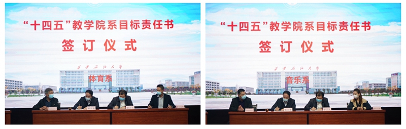 會(huì)議首先由校黨委書(shū)記賽云秀和校長(zhǎng)李天太與各院(系)書(shū)記、院長(zhǎng)簽訂“十四五”事業(yè)發(fā)展規(guī)劃目標(biāo)責(zé)任書(shū)。院系 “十四五”目標(biāo)責(zé)任書(shū)從黨建與文化建設(shè)、學(xué)科專業(yè)、人才培養(yǎng)、師資隊(duì)伍、科學(xué)研究、合作與交流等不同維度明晰了院系“十四五”建設(shè)目標(biāo)與任務(wù)。