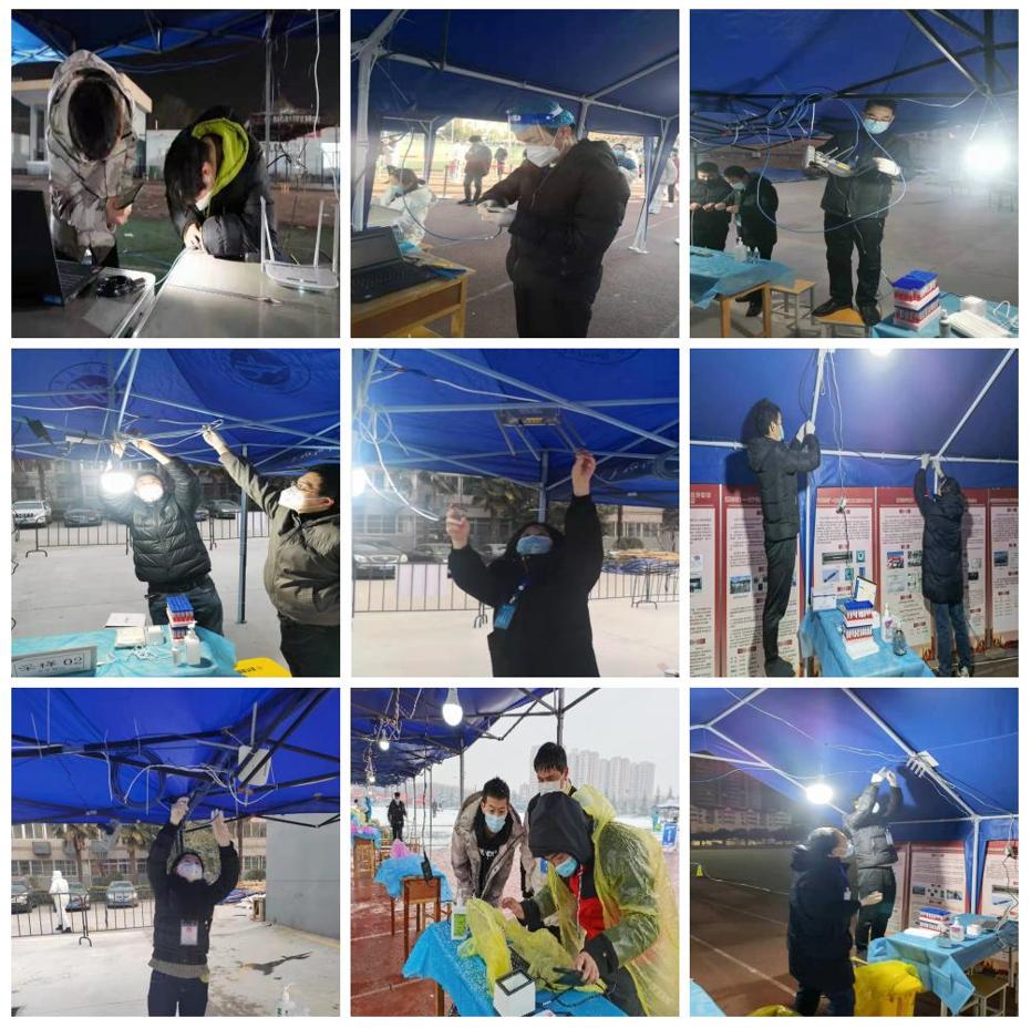 在每次全員核酸檢測(cè)前,都有一批忙碌的身影,在寒冬里手持網(wǎng)線鉗、剝線器、測(cè)線儀等工具,在“大白”上崗之前,測(cè)網(wǎng)線、調(diào)試路由器,提前為當(dāng)天的核酸檢測(cè)做準(zhǔn)備。在核酸檢測(cè)開始后,他們蹲點(diǎn)旁站,堅(jiān)守現(xiàn)場(chǎng)直到當(dāng)天的核酸檢測(cè)順利結(jié)束。“把路由器電源和電源插板拿膠帶再粘一圈”“這根網(wǎng)線接頭再重新做個(gè)新的”“把所有的筆記本再測(cè)試一遍”。為了保障全員核酸順利進(jìn)行,他們提前到崗,一遍一遍地檢查,一次一次地測(cè)試,竭盡所能,盡全力排除隱患點(diǎn),確保核酸檢測(cè)場(chǎng)地網(wǎng)絡(luò)通暢。“這幾天網(wǎng)絡(luò)保障還比較順利,雖然很苦、很累,但核酸檢測(cè)很順利,我們做的一切都很值得”信息中心技術(shù)人員趙駿說(shuō)。從1215日開始,趙駿同志一直堅(jiān)守鄠邑校區(qū),經(jīng)常冒著風(fēng)雪、加班到凌晨,為鄠邑校區(qū)全員核酸檢測(cè)提供網(wǎng)絡(luò)保障。