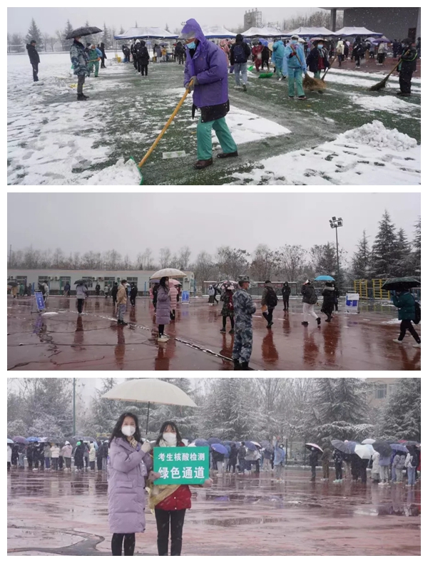 學(xué)校各相關(guān)職能部門多措并舉,全力護(hù)考、暖心保障,得到廣大考生一致好評。在學(xué)校主干道設(shè)置指示牌和標(biāo)識,安排學(xué)生志愿者,維護(hù)秩序、引導(dǎo)方向,積極服務(wù)考生順利進(jìn)場。后勤管理處設(shè)置午餐綠色通道、臨時休息區(qū),校醫(yī)院開設(shè)核酸檢測專場,為考生平安順利考試保駕護(hù)航。B、C類考生專班制定考試預(yù)案,監(jiān)考教師身著防護(hù)服前往隔離酒店,完成送考上門服務(wù)。1226日,根據(jù)最新交通管控情況,我校派出專車接送考生100余人次,貼心服務(wù)考生。