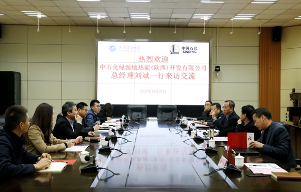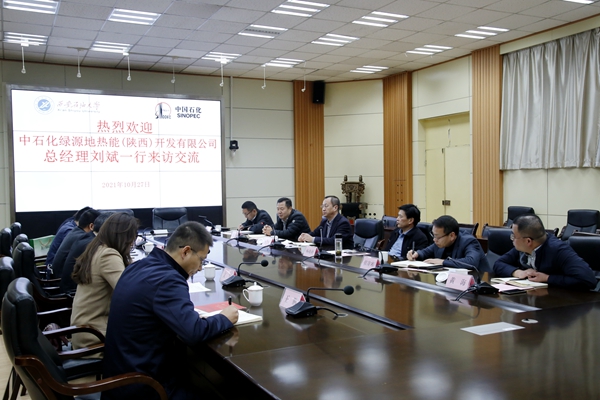 1027日上午,中石化綠源地?zé)崮埽兾鳎╅_發(fā)有限公司總經(jīng)理劉斌一行6人來校交流座談。會議在雁塔校區(qū)會議中心第二會議室召開。副校長楊戰(zhàn)社出席會議,科技處、基建處、后勤管理處和石油工程學(xué)院負(fù)責(zé)人參加了會議。副校長張榮軍主持會議。