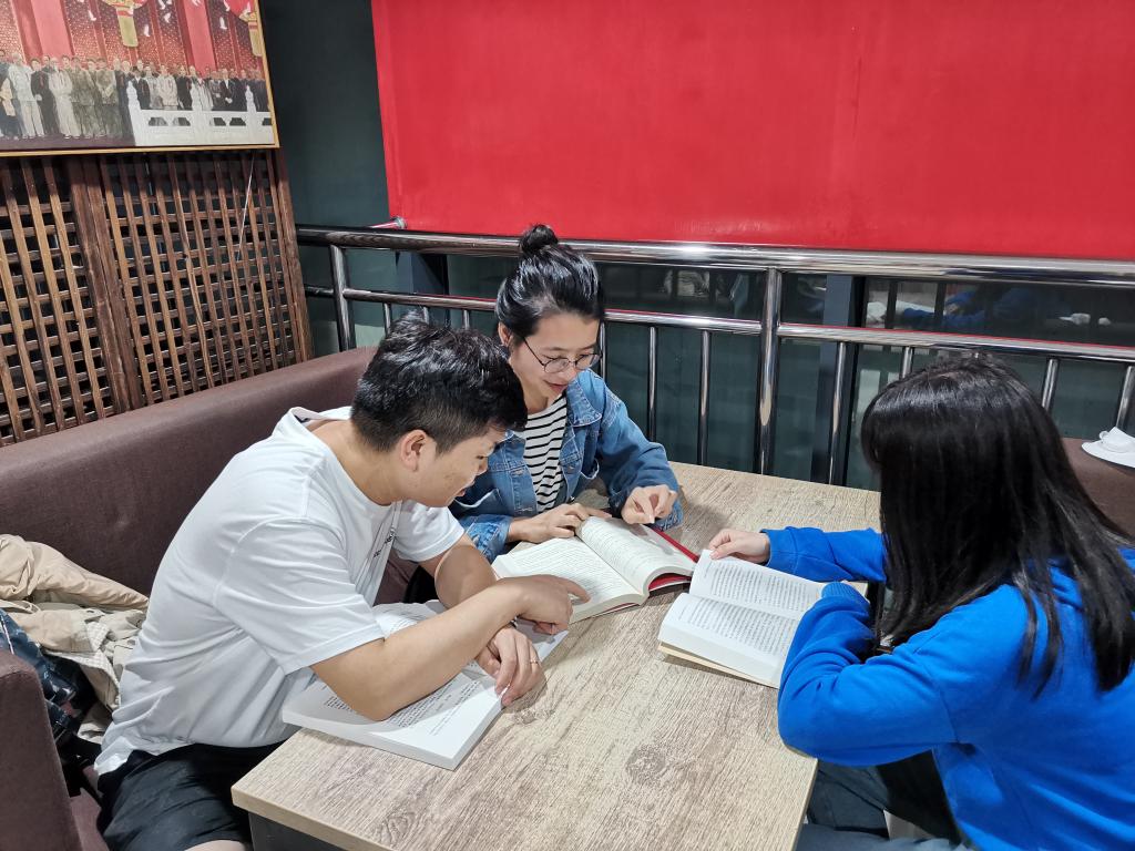 國慶期間,馬克思主義學(xué)院研究生在鄠邑校區(qū)圖書館馬列書屋幫助整理書籍,并開展讀書研討活動(dòng)。學(xué)院研究生輔導(dǎo)員童玲老師參與指導(dǎo),全體留校的2021級研究生參加了此次整理分享交流活動(dòng)?!榜R列書屋”是我校具有代表性的學(xué)習(xí)馬克思主義教育基地,書屋內(nèi)陳列著經(jīng)典著作以及多個(gè)國家不同時(shí)期眾多學(xué)者對馬克思主義、馬克思主義中國化的著作共500余冊。另有中國共產(chǎn)黨思想理論資源數(shù)據(jù)庫、中國社會(huì)科學(xué)文庫等11個(gè)數(shù)據(jù)庫,包含有關(guān)馬列的電子圖書4060冊及近1.69萬篇有關(guān)馬列的論文(電子版)可供師生學(xué)習(xí)使用。沉浸式的VR體驗(yàn)、豐富的文獻(xiàn)資料,極大地幫助了師生實(shí)現(xiàn)自我教育和自我提高,為研究生學(xué)習(xí)馬克思主義打造了堅(jiān)實(shí)的基礎(chǔ)。