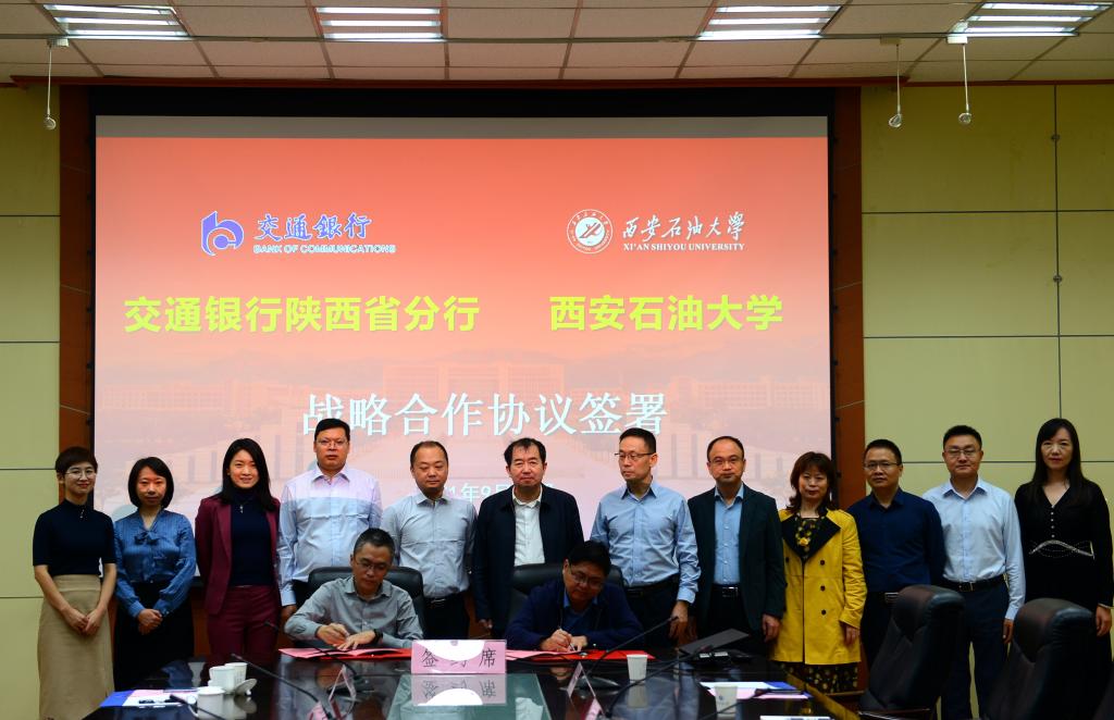 9月30日下午,我校與交通銀行陜西省分行簽署“十四五”期間戰(zhàn)略合作協(xié)議,簽約儀式在我校雁塔校區(qū)第一會議室舉行。交通銀行陜西省分行副行長蔣安祎一行六人,我校校長李天太、總會計師樊曉民出席簽約儀式。簽約儀式由校黨委副書記雷西合主持。