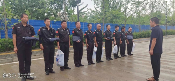 79日上午,下發(fā)救援物資,調(diào)整分配保安隊(duì)伍力量配置。