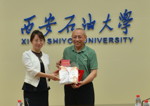 隨后,國(guó)際教育學(xué)院(絲路能源學(xué)院)院長(zhǎng)董皓老師為李鎧先生贈(zèng)送了創(chuàng)新創(chuàng)業(yè)紀(jì)念品。