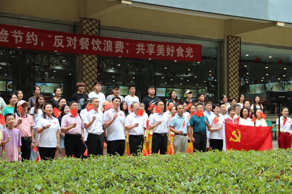 為慶祝中國共產黨成立100周年,響應習近平總書記在黨的十九大報告中提出的新時代堅持文化自信號召,7月1日中午,音樂系組織師生在雁塔校區(qū)學生餐廳舉辦“紅歌快閃”活動,吸引了校園眾多師生觀看,場面熱烈。音樂系已連續(xù)四年組織“紅歌快閃”活動,唱響主旋律,凝聚精氣神,謳歌黨的光輝歷史和豐功偉績,充分展現(xiàn)師生良好的精神風貌。校黨委副書記雷西合,組織部、宣傳部、音樂系、高教研究與評估中心、材料科學與工程學院、馬克思主義學院、經濟管理學院、外國語學院等單位負責人,以及100余名音樂系師生參加了本次“紅歌快閃”活動。本次活動由音樂系黨總支策劃,何云老師排練指導。