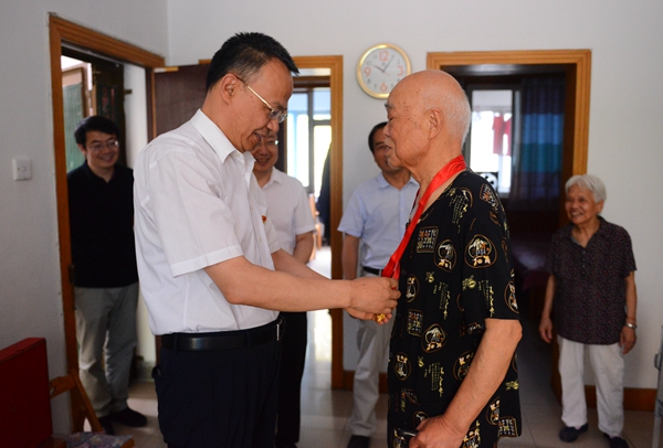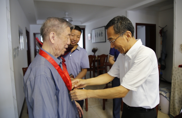 在“慶祝中華人民共和國成立70周年”紀念章獲得者、離休干部薛紀元家中,校黨委書記賽云秀為薛紀元和姚桂榮夫婦佩戴了“光榮在黨50年”紀念章,仔細詢問了他們的身體健康狀況和生活情況。他指出,在建黨100周年之際,黨中央決定頒發(fā)“光榮在黨50年”紀念章,體現(xiàn)了以習近平同志為核心的黨中央對老黨員的政治關(guān)懷,體現(xiàn)了黨和人民對老黨員歷史貢獻的充分肯定,希望他們保持愉悅身心、安享晚年生活,并積極為學校提出寶貴意見建議,助力學校改革發(fā)展。隨后,賽書記慰問了“慶祝中華人民共和國成立70周年”紀念章和“中國人民志愿軍抗美援朝出國作戰(zhàn)70周年”紀念章獲得者董玉田、李秋華夫婦和困難老黨員陳寶江,并為他們佩戴了“光榮在黨50年”紀念章。在陳寶江同志家中,賽書記親切詢問其身體狀況、家庭收入、醫(yī)藥費報銷情況以及生活中存在的困難和問題,叮囑相關(guān)部門要多關(guān)心老黨員的生活,幫助他們解決實際問題。