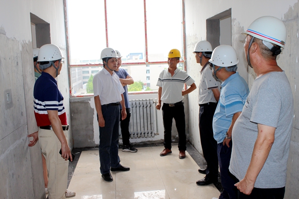 楊戰(zhàn)社副校長(zhǎng)一行先來到19#20#學(xué)生公寓樓項(xiàng)目工地,目前工程已進(jìn)入收尾的攻堅(jiān)階段。在施工現(xiàn)場(chǎng),楊戰(zhàn)社副校長(zhǎng)重點(diǎn)對(duì)工程的質(zhì)量及安全措施進(jìn)行了檢查。他強(qiáng)調(diào):項(xiàng)目部及監(jiān)理單位要進(jìn)一步強(qiáng)化對(duì)安全生產(chǎn)的重視,嚴(yán)守安全紅線,嚴(yán)格落實(shí)監(jiān)管職責(zé),杜絕一切安全生產(chǎn)責(zé)任事故發(fā)生;暑期高溫炎熱,施工人員及管理人員一定要做好防暑降溫工作;在保證質(zhì)量、安全的前提下,確保按期竣工驗(yàn)收、投入使用。
