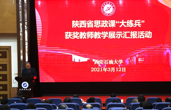 312日下午,學(xué)校舉辦首場教學(xué)展示匯報活動。校黨政領(lǐng)導(dǎo)賽云秀、張木、陳軍斌、程永清出席,理學(xué)院、外國語學(xué)院等5個院系負(fù)責(zé)人和教師代表參加。陳軍斌副校長介紹了陜西省和我校思政課大練兵活動情況,希望參會教師以展示匯報活動為契機,進一步加強課程思政建設(shè),提升課堂育人成效。校黨委副書記張木在總結(jié)講話中對四位獲獎教師及展示活動給予肯定,并提出加強職業(yè)道德修養(yǎng)、提升自身教育教學(xué)能力和強化課程思政建設(shè)三點要求。