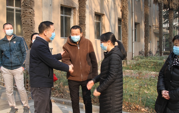 在新春佳節(jié)來(lái)臨之際,210日上午,校黨委副書記雷西合、副校長(zhǎng)蘇文甫帶隊(duì)看望慰問(wèn)了寒假期間堅(jiān)守崗位的保衛(wèi)處、后勤管理處、校醫(yī)院以及行政樓部分處室的教職工,為他們送去節(jié)日關(guān)愛和新春祝福。
