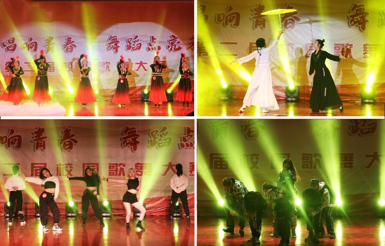 本屆校園歌舞大賽總決賽共分為“歌曲大賽”“舞蹈大賽”兩個(gè)篇章。在歌曲大賽篇章,各參賽選手們落落大方、深情獻(xiàn)唱,用音樂詮釋情感,用歌聲追逐夢想。杜許龍等同學(xué)與來自鄠邑區(qū)八丈寺小學(xué)的幫唱嘉賓合作的《少年錦時(shí)》曲調(diào)婉轉(zhuǎn),讓大家感受到了“人無再少年”的淡淡情懷;羅昊天與石昌明同學(xué)的原創(chuàng)歌曲《錯(cuò)》深情動人,讓現(xiàn)場觀眾沉浸其中;梁芊芊等同學(xué)帶來的《New York New York》節(jié)奏歡快,韻味十足;袁琪景等同學(xué)以一聲老腔喚醒三秦大地——《給你一點(diǎn)顏色》,將比賽氛圍推向了高潮。