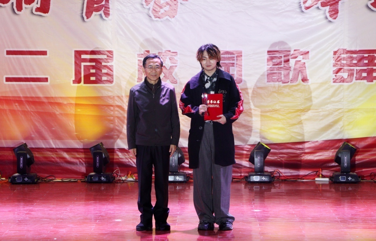 最終,經(jīng)過激烈角逐,《給你一點(diǎn)顏色》獲歌曲組一等獎(jiǎng),《New York New York》《黑貓警長》獲歌曲組二等獎(jiǎng),《鴻雁》《故鄉(xiāng)山川》《易燃易爆炸》獲歌曲組三等獎(jiǎng),《少年錦時(shí)》《古風(fēng)歌曲串燒》《錯(cuò)》《飛云之下》獲歌曲組優(yōu)秀獎(jiǎng);強(qiáng)波蓉、萊麗古麗·伊立哈木獲舞蹈組一等獎(jiǎng),胡容榕、卡比熱阿·比那爾別克獲舞蹈組二等獎(jiǎng),孜拉來·阿不地力木、娜迪熱·阿樸杜外力、邵鏝毅獲舞蹈組三等獎(jiǎng),沈安媞、王一平、王馨蔚、楊怡飛、李蔚然獲舞蹈組優(yōu)秀獎(jiǎng);古蘭、邱迪、范嘉欣、張靚、沈軒羽、史陽獲優(yōu)秀導(dǎo)師獎(jiǎng)。張木副書記為獲獎(jiǎng)師生頒獎(jiǎng)。
