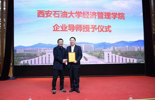 經(jīng)濟管理學院副院長李俊亭為莫勇總會計師頒發(fā)了企業(yè)導師證書,并代表經(jīng)濟管理學院與陜建控股集團公司簽訂了研究生聯(lián)合培養(yǎng)基地合作協(xié)議。
