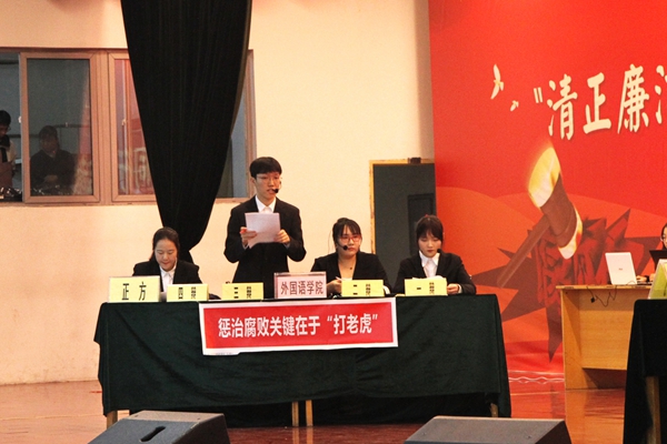 校黨委副書記、紀委書記、監(jiān)察專員李延平作了總結講話。他指出,“智者杯”辯論賽展示了我校青年學生探索真理、追求知識、注重合作、群策群力的激情和風采,對學生的邏輯思維能力、語言表達能力、思辨能力以及團隊協(xié)作能力都有很大的提高。從決賽現(xiàn)場的辯論中,可以看出同學們對黨中央全面從嚴治黨的深刻理解和高度認同,從而使辯論賽同時成為了一場生動的廉潔文化教育。黨的十八大以來,以習近平同志為核心的黨中央堅持鐵腕反腐,堅持反腐敗無禁區(qū)、全覆蓋、零容忍,堅持“老虎”“蒼蠅”一起打,不敢腐的目標初步實現(xiàn),不能腐的籠子越扎越緊,不想腐的堤壩正在構筑,反腐敗斗爭壓倒性態(tài)勢已經形成并鞏固發(fā)展。大學是傳承文明和培養(yǎng)高素質人才的重要陣地,清正廉潔是高素質人才的核心素養(yǎng),對大學生進行廉潔教育,增強廉潔意識,培養(yǎng)廉潔操守,是高校思想政治教育的應有之義,也是大學生健康成長之所需。在大學教育體系中,加強對大學生的廉潔教育,不僅是對大學生的深情關懷,而且也是高等教育的職責所在。