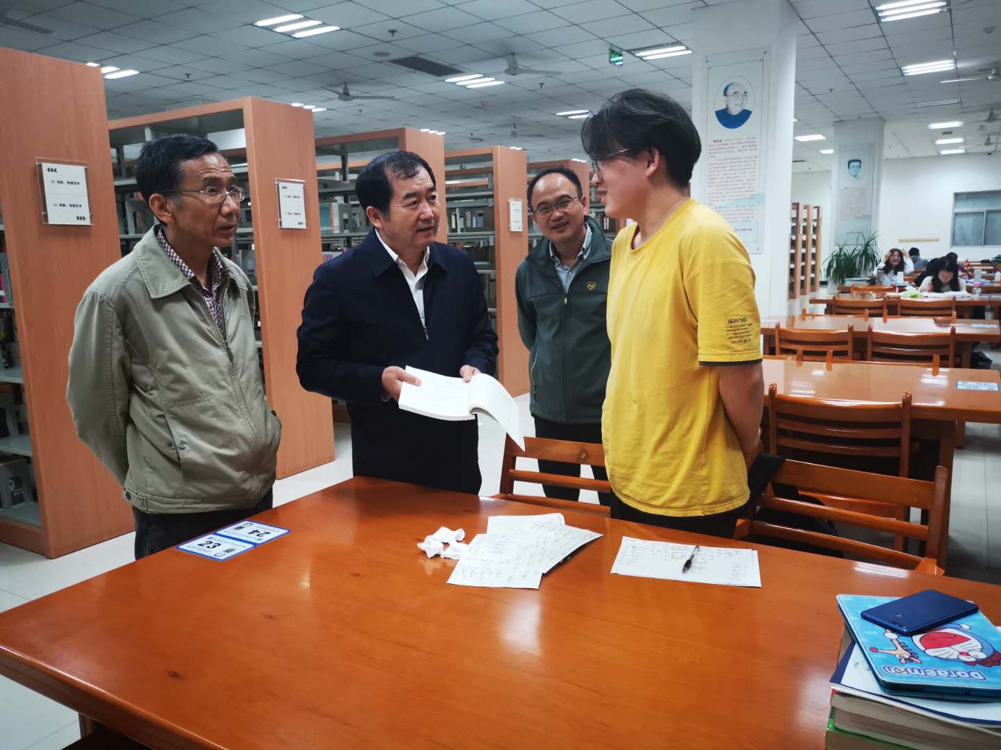 在圖書館閱覽室和理學(xué)院、計算機學(xué)院考研自習(xí)室走訪時,李天太校長與正在這里復(fù)習(xí)考研的同學(xué)們深入交流,詳細詢問同學(xué)們的考研志向和復(fù)習(xí)進度,他充分肯定同學(xué)們?yōu)閭€人發(fā)展犧牲假期休息時間復(fù)習(xí)考研的努力,并表示學(xué)校將盡可能為同學(xué)們學(xué)習(xí)提供便利條件,祝愿廣大考研同學(xué)都能心想事成。