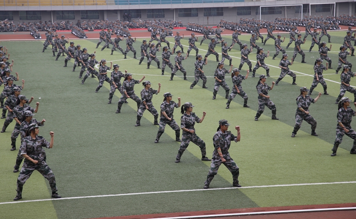 伴隨著激昂的進(jìn)行曲和嘹亮的口號(hào),2020級(jí)本科生分12個(gè)方陣,邁著整齊矯健的步伐,精神飽滿地經(jīng)過主席臺(tái),向全校師生展示隊(duì)列訓(xùn)練成果。隊(duì)列成果展示后,2020級(jí)本科新生分別進(jìn)行了捕俘刀、軍體拳、刺殺操、手語操等科目的表演。