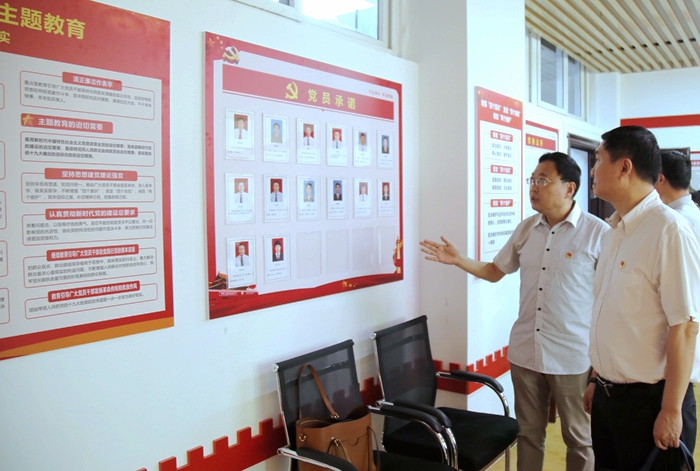 會前,評估驗收工作組一行前往地球科學與工程學院黨員活動室,對我?!半p創(chuàng)”建設單位的黨建陣地、成果展示和資料匯編進行了實地查看,并觀看了示范點建設微視頻。