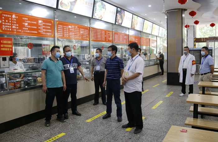 5月27日上午,由雁塔區(qū)教育局鄒轉(zhuǎn)景、張永剛,雁塔區(qū)市場監(jiān)督管理局衛(wèi)春濤,雁塔區(qū)衛(wèi)健局王階昌,雁塔區(qū)疾控中心楊琪組成的雁塔區(qū)教育機構疫情防控第五巡回檢查指導組一行五人來到我校雁塔校區(qū)實地檢查疫情防控工作。副校長蘇文甫及相關部門負責人陪同檢查。