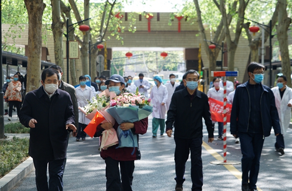 48日上午,宋彥霞護(hù)士結(jié)束了14天的隔離觀察期,從隔離觀察點(diǎn)返回學(xué)校。校黨政領(lǐng)導(dǎo)李天太、張木、蘇文甫,相關(guān)部門負(fù)責(zé)人及校醫(yī)院部分職工在雁塔校區(qū)東門迎接宋彥霞護(hù)士。