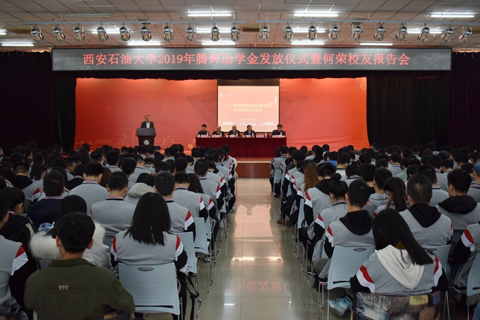 11月20日下午,2019年騰輝助學(xué)金發(fā)放儀式暨何榮校友報告會在鄠邑校區(qū)騰輝大學(xué)生活動中心舉行。校黨委副書記張木,西安騰輝電氣有限公司總經(jīng)理、“騰輝助學(xué)金”主要出資人、我校校友何榮出席儀式。學(xué)生工作處、合作發(fā)展處、機械工程學(xué)院負(fù)責(zé)人,2019年騰輝助學(xué)金獲得者,西安騰輝電氣有限公司員工代表,以及各院系師生代表共500余人參加了活動。