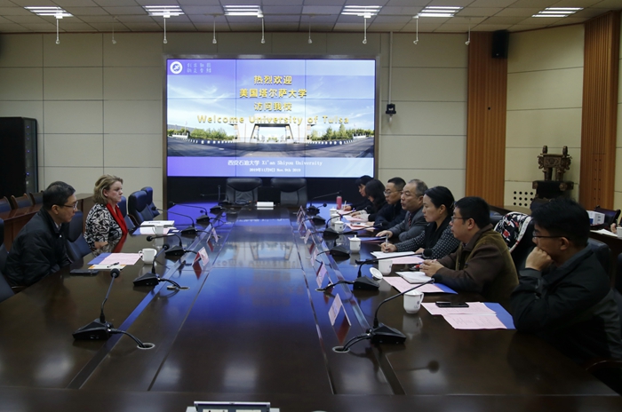 座談會前,李天太校長在雁塔校區(qū)會議中心貴賓室會見了簡·庫科副教務長一行。李校長談到,塔爾薩大學是一所世界知名的高校,尤其是石油工程專業(yè)實力非常雄厚,在國際上享有很高的聲譽。我校是中國西北地區(qū)唯一一所以石油石化為特色的高等院校,為中國西北地區(qū)油氣田勘探開發(fā)輸送了大量專業(yè)人才。他希望以簡·庫科副教務長一行來訪為契機,促進兩校交流,在師生互訪、科學研究等方面開展深度合作,聯(lián)合培養(yǎng)國際化人才,為推動中美石油石化行業(yè)的共同發(fā)展做出積極貢獻。