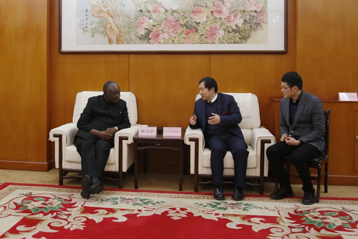會(huì)前,李天太校長會(huì)見了代表團(tuán)一行。李校長表示,中贊兩國建交55年來,兩國各領(lǐng)域交流廣泛,坦贊鐵路建設(shè)已成為中贊友好關(guān)系史上的一段佳話。希望秘書長此次訪問能夠促進(jìn)我校與贊比亞大學(xué)等贊方高校的交流,推動(dòng)中贊教育合作取得新進(jìn)展。