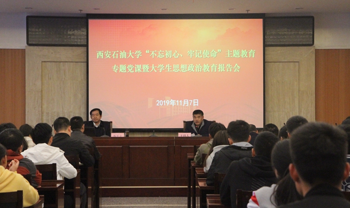 根據(jù)“不忘初心、牢記使命”主題教育部署安排,11月7日下午、8日下午,校長李天太以《堅定信念勇于擔當立志成才》為題,分別在鄠邑校區(qū)、雁塔校區(qū)為本科生、研究生講授了主題教育專題黨課暨思想政治教育報告會。本科生報告會由鄠邑校區(qū)管理辦公室主任覃彪主持,研究生報告會由研究生工作部部長高榮芳主持。