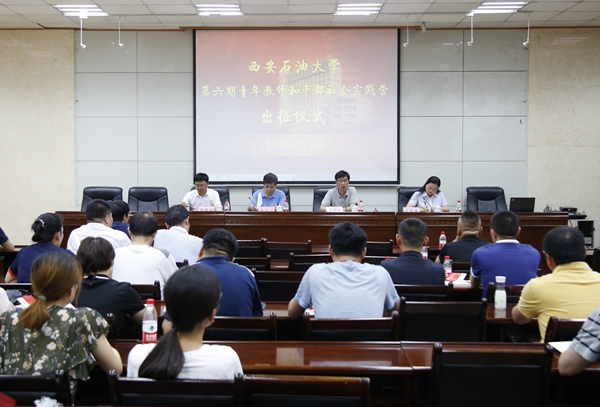 7月10日下午,我校第六期青年教師和干部社會實(shí)踐營出征儀式在雁塔校區(qū)第三會議室舉辦。副校長楊戰(zhàn)社、蘇文甫出席儀式。黨委組織部、黨委教師工作部負(fù)責(zé)人及全體參訓(xùn)學(xué)員參加了儀式。黨委教師工作部部長武曉朦主持儀式。