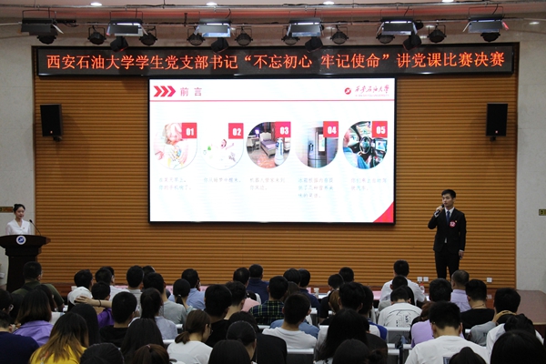 本次講黨課比賽以“不忘初心、牢記使命”為主題,緊緊圍繞新時代黨的建設總要求,結(jié)合黨支部建設年工作任務,以提升組織力為重點,加強和改進黨支部工作,有效推進黨建工作與業(yè)務工作融合互促,充分發(fā)揮黨支部戰(zhàn)斗堡壘作用;教育引導廣大學生黨員守初心、擔使命,找差距、抓落實,積極發(fā)揮學生黨員先鋒模范作用,引領廣大青年學生堅定理想信念,矢志成長成才?;顒訌?月下旬啟動,各院(系)級單位黨組織高度重視,積極組織黨支部書記開展初賽選拔,共有22名學生黨員進入初賽。經(jīng)過學校評審組對初賽選手的講稿和PPT進行專業(yè)、細致地評審,最終有15名學生黨員入圍講黨課決賽。