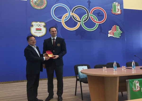 李華副校長(zhǎng)與白羅斯國(guó)立體育大學(xué)校長(zhǎng)希爾蓋·列普金交流