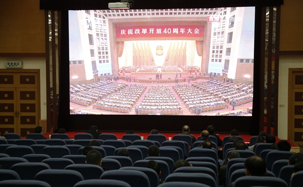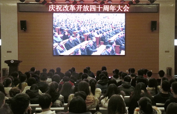 12月18日上午10時,慶祝改革開放40周年大會在人民大會堂舉行,中共中央總書記、國家主席、中央軍委主席習近平出席大會并發(fā)表重要講話。我校組織師生員工在多個會場集中收看了大會直播。