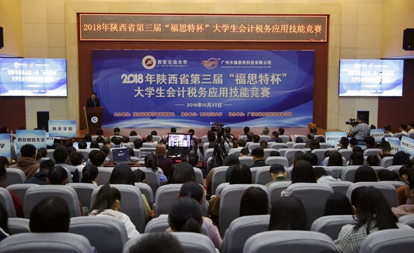 10月27日,由陜西省教育廳高等教育處主辦、西安石油大學(xué)承辦、廣州市福思特科技有限公司提供技術(shù)支持的2018年陜西省第三屆“福思特杯”大學(xué)生會(huì)計(jì)應(yīng)用技能競(jìng)賽暨“貫徹黨的十九大精神,推進(jìn)財(cái)稅技能精準(zhǔn)改革”研討會(huì)在鄠邑校區(qū)舉辦。陜西省財(cái)政廳副巡視員王素文,陜西省教育廳高等教育處趙登攀,西安石油大學(xué)副校長(zhǎng)楊戰(zhàn)社,西安交通大學(xué)管理學(xué)院會(huì)計(jì)與財(cái)務(wù)系主任田高良,陜西財(cái)經(jīng)職業(yè)技術(shù)學(xué)院副校長(zhǎng)范忠,廣州市福思特科技有限公司董事長(zhǎng)閆曉霞等出席比賽開(kāi)幕式。我校實(shí)驗(yàn)室管理處處長(zhǎng)孟開(kāi)元主持開(kāi)幕式。